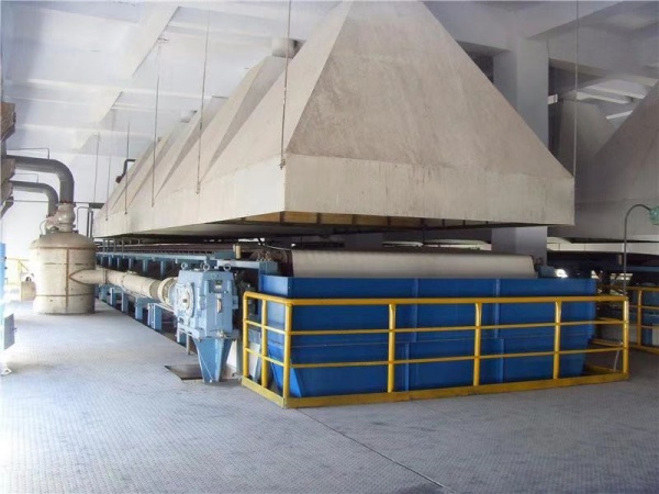 氧化铝生产过程中,可采用橡胶带式真空过滤机进行固液分离。其洗涤采用6次顺流洗涤方式,真空度不低于-0.05mpa,能充分降低滤饼的含水量,且从喂料、卸料、洗涤、滤布清洗等均为全自动连续运行。